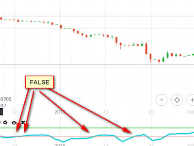 | In four cases the indicator is right (1), but in the fifth case (2), the price “took off”. |